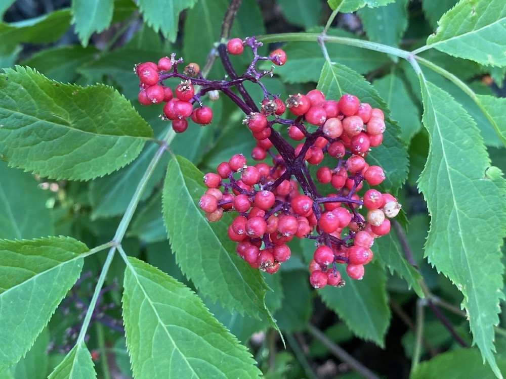 One of only two native elderberries in this region, red elderberry is a close relative of blue elderberry, a species that is very well known because of its useful blue fruit that is made into wine, preserves, cough syrup, and more. Red elderberry is less well known and its fruit is not edible when raw. The raw fruit is considered poisonous, particularly because of the seeds, because they can cause gastrointestinal discomfort, but the seeds can be strained and the fruit can be cooked, or properly prepared for consumption. Red elderberry is used medicinally.